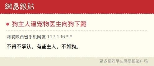 ——【在苏州一家宠物医院内,医院负责人竟然当着狗主人的面,在一只重病的小狗跟前屈膝下跪,并如此说道。据悉,事情起因是狗主人认为医院误诊致爱犬病危,向医院负责人讨说法。院方称多次遭狗主人威胁,下跪为息事宁人。】