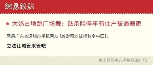 ——【泰州王小姐取车时发现爱车上被贴“锻炼重地,请勿停车”的纸条,还用胶带贴了左一层右一层,愤怒的王小姐上微博诉苦。业主们抱怨,跳舞大妈还曾“逼得”楼上住户卖房子。】