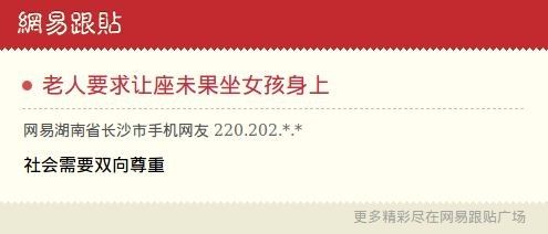 ——【日前,一名老人因女孩不让座一屁股坐其身上引发热议。《西安晚报》评论文章认为,让座属道德范畴,核心内容是相互理解。老年人不能倚老卖老强迫年轻人让座。】