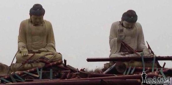 据汕尾市民网报道,位于陆丰市沿海公路碣石镇的广福寺,耗资近五千万元打造的两尊镇寺大佛,在强台风天兔登陆汕尾后,经不起考验,两尊大佛双双低下头,网友戏称,这两尊大佛扪心自问没有好好庇佑海陆丰人民,对天兔造成的人命伤亡和财产损失进行忏悔,有网友戏说两佛低头表示为灾难祈福,又有另一位网友回复,如此佛祖工程,是佛祖对质量问题表示委屈和不满。
