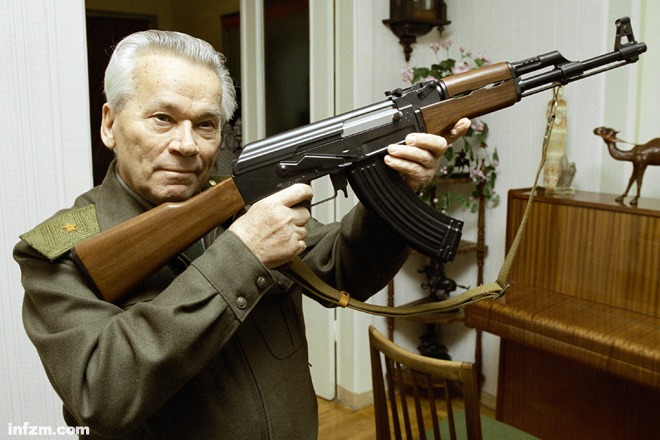 “为什么人们总是问我它带来的危害,许多国家是靠它获得自由的。”卡拉什尼科夫并不为这项发明感到后悔。“一次我在莫桑比克碰到了他们的国防部长。他对我说,我们的士兵回家后就给孩子起名叫‘卡拉什’。他对我说,来看看吧,现在每个村子至少有10个叫‘卡拉什’的孩子。”