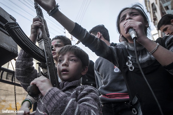 即便是天真无邪的儿童,手持AK47像是在拿一件普通的玩具,射击起来也毫无畏惧。最令人匪夷所思的,是叙利亚人在婚礼上用AK47替代鞭炮出镜,用响彻天空的枪声和掉落一地的弹壳来迎接新人的到来。