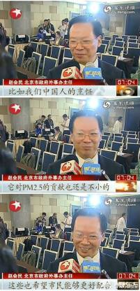 “中国人习惯的烹饪,对PM2.5的贡献也不小,希望市民配合做好清洁空气的工作。”前天,北京市政府外事办主任赵会民的“烹饪影响PM2.5”论一出,迅速成为微博热门话题。