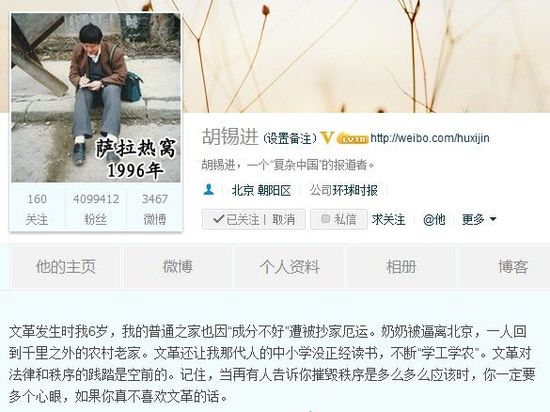 ——【14日凌晨,《环球时报》总编辑胡锡进发微博,叙述自己在文革时期所遭受的灾难,认为文革对法律和秩序的践踏是空前的,告诫大家在对待摧毁秩序的行为时“要多个心眼”。】