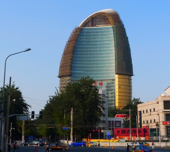 ——【近日,《人民日报》新大楼造型引起热议,被称披上“土豪金”,有网友配以央视“大裤衩”照片,对其寓意加以揣测。设计者周琦曾表示,其主要设计概念是以圆形造型表达“天圆地方”的寓意,一些网友恶搞,结果让人浮想联翩。】