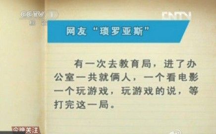 “有一次去教育局,进了办公室一共就俩人,一个看电影,一个玩游戏,玩游戏的说,等打完这一局。”