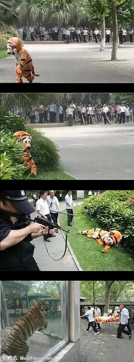 据说某动物园教育老虎不要逃跑的方法...不知道效果如何