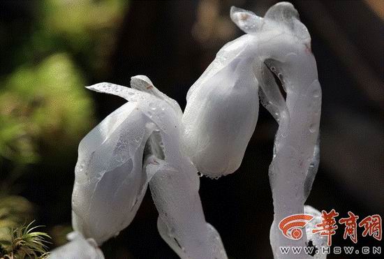 最近,周至殿镇田峪景区发现了一种独特的植物,株高十多厘米,一簇一簇地生长,浑身晶莹剔透,非常罕见!它就是水晶兰,也有着"幽灵草""梦兰花"等名。在武侠小说里,它常常被神化成具有起死回生功效的仙草,或被视为具有灵异力量可杀人于无形的邪恶化身,甚至于它的幽香也能让人闻之色变。在传说中它也是冥界的花,是邪恶和神秘的象征,因此也得名"死亡之花"。
