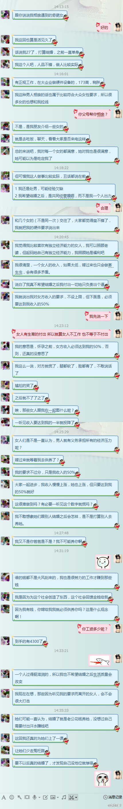 自大狂!!!4300元就敢拿出来说事,4300元都难养活你自己,那些女人是觉得你低能才离开的。[42]