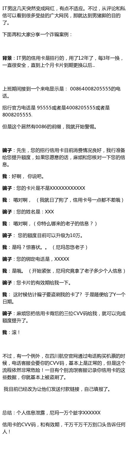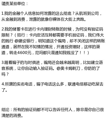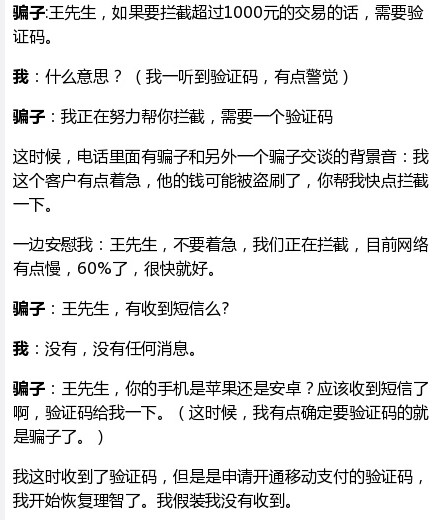 下次骗子做一个语音系统,直接提示你:请输入验证码。到那个时候,估计会有更多的人上当受骗了!