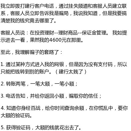 庆幸的是,博主拨打了建行客服电话,并搞清了骗子的套路。