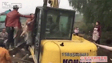 挖掘机司机大战村民,看热闹大妈不幸被误铲