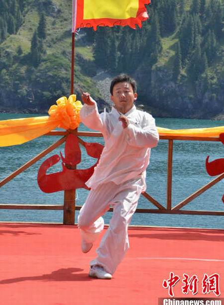 8月7日上午,“天山武林大会”在新疆天山天池湖畔拉开帷幕,来自少林、峨眉、武当、昆仑、崆峒等11门派的掌门或代表纷纷登台献艺。