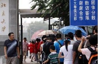 ——【媒体报道假期北大清华游受学生青睐,排队一小时才进入北大。其间记者见到一名10岁左右的男孩两次被挤哭,另一名十二三岁的男孩被挤得呕吐不止。】