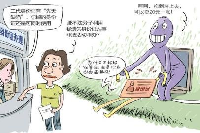 二代身份证在全国通用了8个月,就被曝出患有“先天缺陷”,由于没有注销措施,即使经过挂失补办处理,遗失的身份证也可以正常使用,一些不法分子利用这个缺陷售卖遗失身份证或从事其他非法活动,从中牟利。