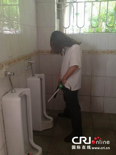 事实上,“尿不歪”就是一个漏斗配上一根细管子。“发明人”介绍,男款“尿不歪”管子比较长,可以直接深入便池,女款的管子则比较短。在现场,即便村姑多么卖力地推销这一“产品”,也没有如厕者愿意花钱购买,后来村姑和老汉索性坐在地上摆摊贩卖,引来不少路人围观询问。