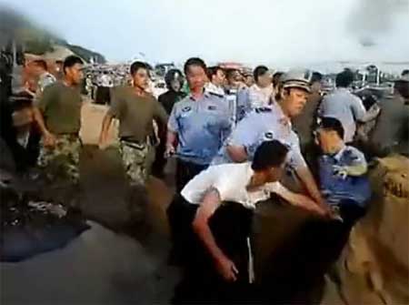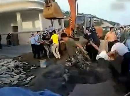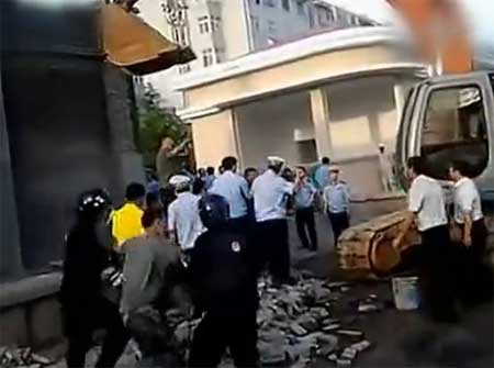 青岛城管强拆军区大院岗亭 与部队警卫冲突