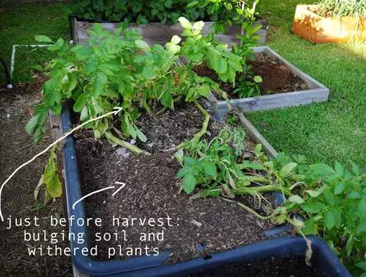 等土豆秧苗长得东歪西斜的时候,就证明土豆该丰收了。当然,土豆成长过程中,千万要记得浇水才行!