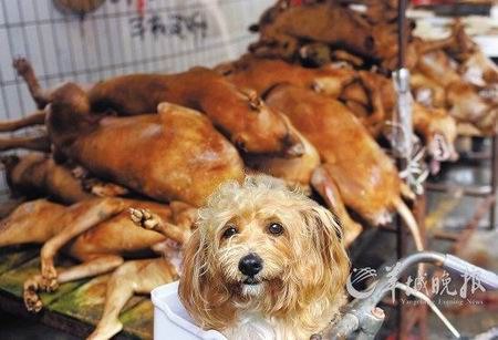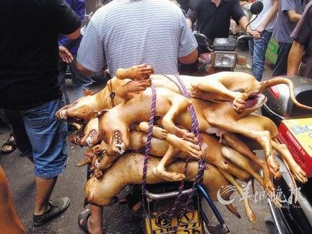 ——【尽管动物保护者再三抗议,广西玉林一年一度的荔枝狗肉节盛况依然,见到记者拍摄,狗肉大排档上的年轻小伙大声放言。】