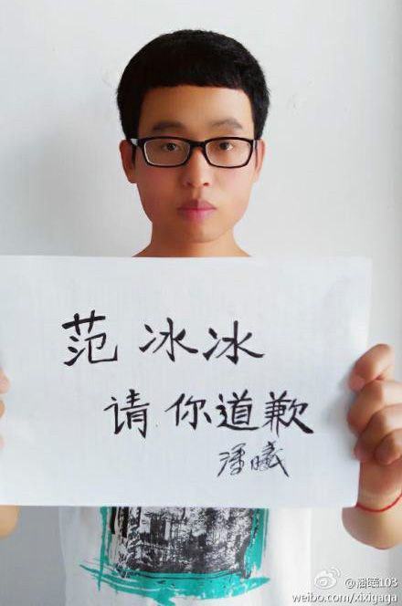“范冰冰,请你道歉。你要对我的青春恋情埋单! ”