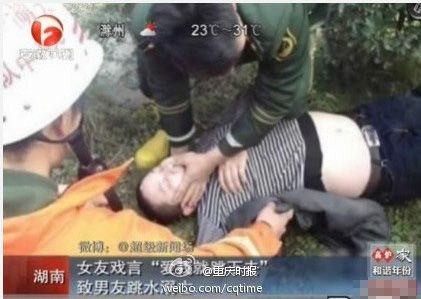 近日,湖南一对情侣在湖畔散步,女子突然问道:“你爱我吗?爱我就跳下去。”谁知,男子没多想,纵身一跃跳进湖中,挣扎了一段时间后,便消失在湖水中……