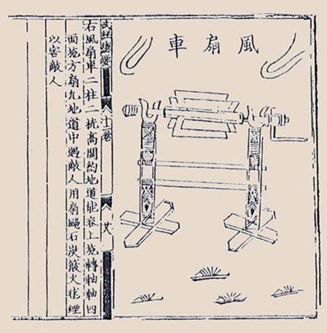 早期的雏形,是风扇车,这是一种人力驱动的鼓风器械,最早用于作战。
