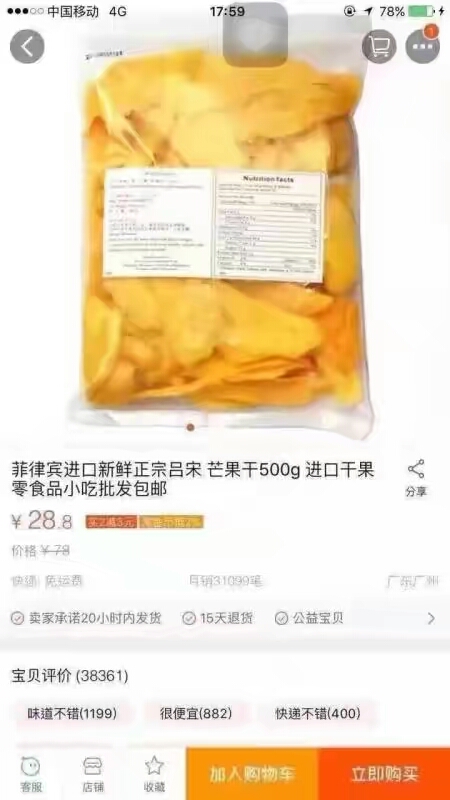 原帖由 Guest from 150.20.202.x 于 2016-7-14 15:52 发表 吓坏了,下班买两包芒果干吃吃压压惊.......听说吕宋芒比较好吃,就不买菲律宾的了。
