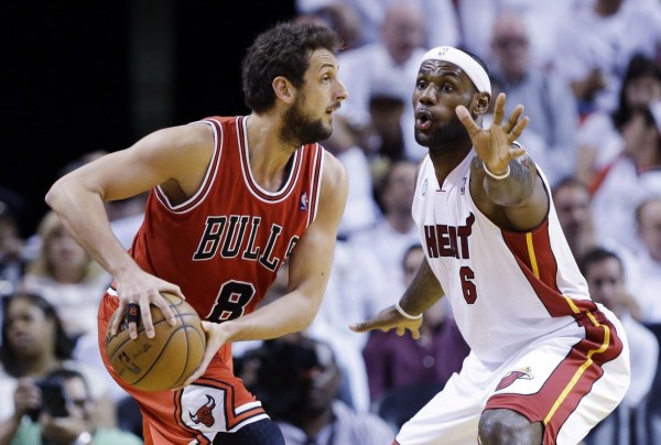 雅虎体育讯 北京时间5月9日消息,在今天进行的NBA季后赛东部半决赛中,卫冕冠军热火主场迎战公牛队。虽然系列赛首战就被公牛爆冷击败,但此役卫冕冠军没有再犯错误,最终在三巨头带领下115-78大胜公牛,将系列赛总比分追到1-1平,37分的分差也创造了热火队史季后赛最大获胜分差纪录。本场比赛公牛输球又输人,最后一节诺阿和吉布森同时被驱逐出场。
