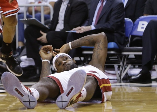 热火首发阵容:哈斯勒姆、勒布朗-詹姆斯、克里斯-波什、马里奥-钱莫斯、韦德。