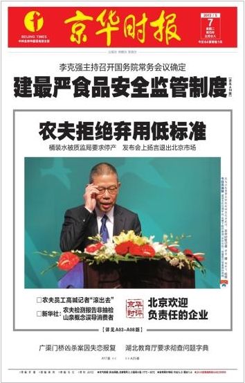 农夫山泉发布会澄而未清 京华时报67个版面来砸场