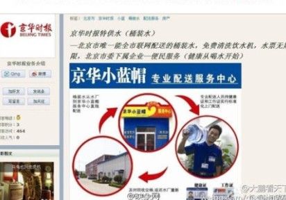 ——【5月7日,《京华时报》再次投入头版等7个整版,猛烈抨击农夫山泉。至此,轰炸已持续28天,共74个版面,史无前例。网友发现,《京华时报》也出售桶装水,并且也号称“天然矿泉”。】