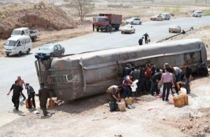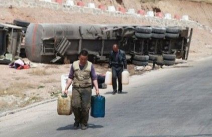 ——【昨日上午,内蒙古乌兰察布市,一辆油罐车发生事故侧翻在地,附近几十名村民和路过的人不顾危险,使用矿泉水瓶、油桶等工具从事故车上哄抢柴油。交警赶到才制止了他们的行为。】