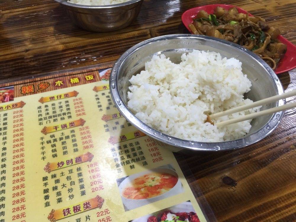 出去吃木桶饭,老板说没木桶了。瞬间变成民工套饭。