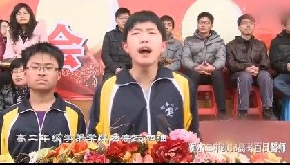 ——【近日,衡水二中2013年高考“百日誓师”视频上走红网络。视频中学子们着校服齐列操场,高举右手,表情严肃,口号整齐高亢。】