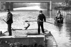 实际上,新丰镇上大多数河浜都像这里一样受到污染,解决污染的常用办法是,打捞死猪。