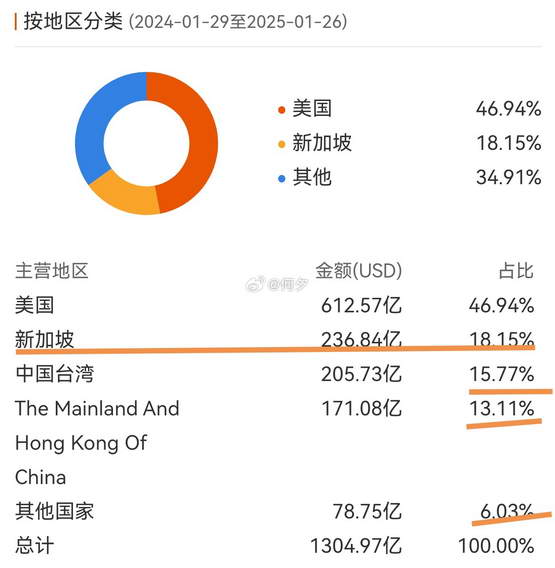 剩下的 54% 份额中,新加坡 + 弯弯 + 香港 + 大陆…… 想都不用想,背后都是中国大陆的需求。