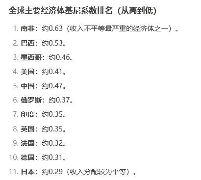 说人话,就是主要经济体里,贫富差距第三大的国家,比前面说的美国还要严重。