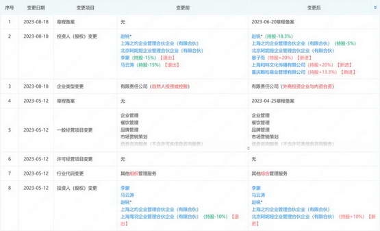 根据企查查信息显示,2023 年 5 月大祥哥的北京阿妮娅企业管理合伙企业成为了上海立兆满企业管理有限公司的股东,持股 10%。三个月后,公司的两位股东李某和马某退出,公司引入了三位新股东,直接拿走了公司 53.3% 的股份,赵某本人也有一定程度的稀释。股权变更带有一定的滞后性,所以情况基本与大祥哥所述一致。