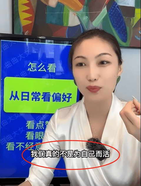 甚至甚至,无比魔幻的一幕是,我在曲曲的视频还看到她语重心长的告诉学员,人真的不是为自己而活的,不能什么都由着自己,也要考虑对方。