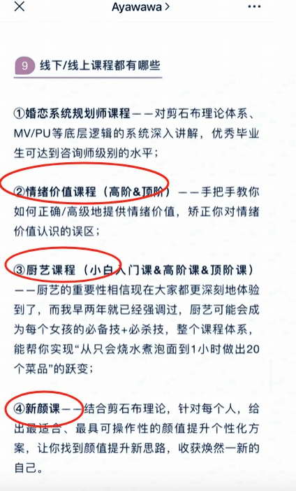 类似的是 ayawawa 培训班,也被视为捞女代表,她们的课程里,不但有烹饪课,甚至还分初级高级。