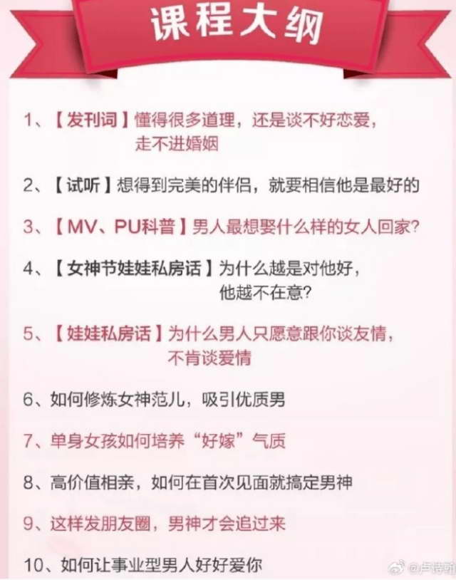 而且,她们的课程包装的很时髦,不会说什么如何傍大款讨好男性,她们课程的名字基本是 “女性成长课程”“向上社交”“平民女孩阶级跨越”,现在你知道人家为什么年入千万了吧?