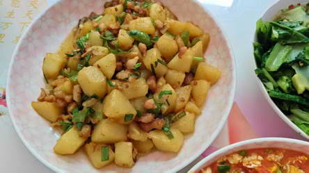 我做得最好的一道菜是肉沫土豆,我爷我奶和我家狗都很爱吃。步骤全凭直觉,可以分享一下:
