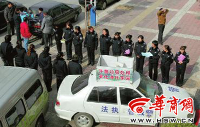 执法车也依然堵在饭店门口。商洛市垃圾处理收费中心该片区的负责人马小娟说,这是他们宣传的一种方式。