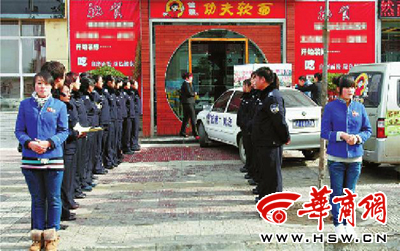 陕西23名城管饭店门口列队 见人就喊没交垃圾费
