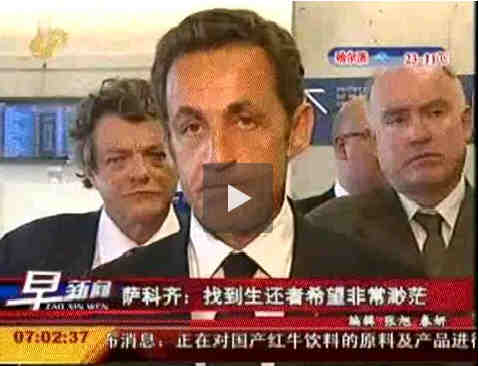 客机失踪事件发生后,法国总统萨科齐表示“极其担忧”, 要求相关部门“不遗余力搜寻飞机”。萨科齐稍后又表示,失踪法航客机乘客生还希望“非常渺茫”。