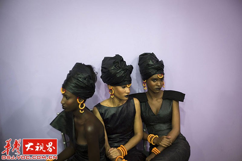 黑色时装周的后台,模特穿着阿达玛创作作品。