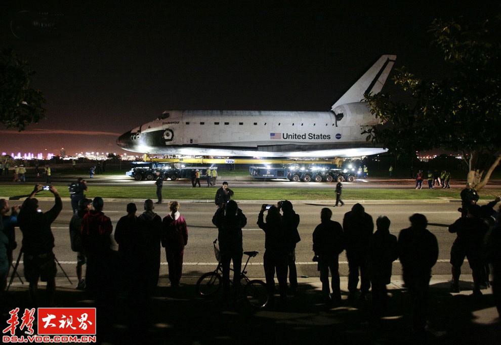 市民们围观奋进号航天飞机离开洛杉矶国际机场。