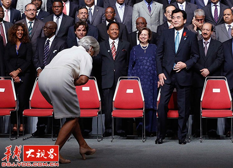 日本东京,国际货币基金组织常务董事克里斯蒂娜·拉加德,向日本财务大臣鞠躬致意。