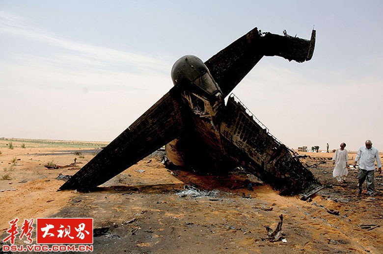 苏丹喀土穆,人们在检查一架运输机的残骸,此次飞机失事导致15名苏丹军人丧生。