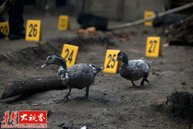 危地马拉的卡纳莱斯镇,两只鸭子经过一个一家七口被不明身份枪手杀害的犯罪现场。